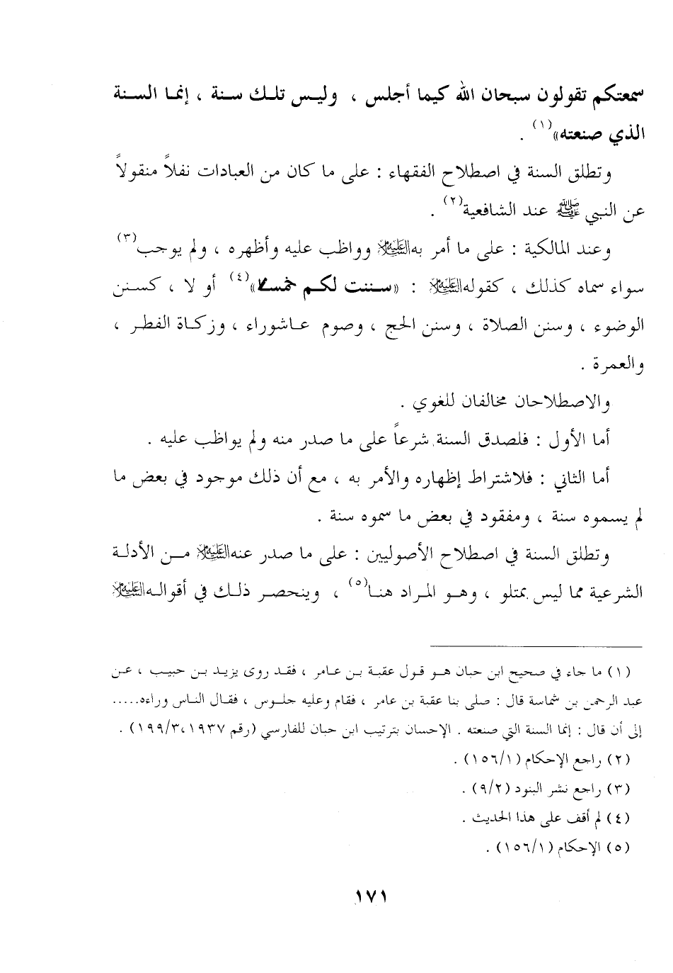 وتطلق السنة في اصطلاح الأصوليين: على ما صدر عنه عليه السلام من الأدلة الشرعية مما ليس بمتلو, وهو المراد هنا, وينحصر ذلك في أقواله عليه السلام