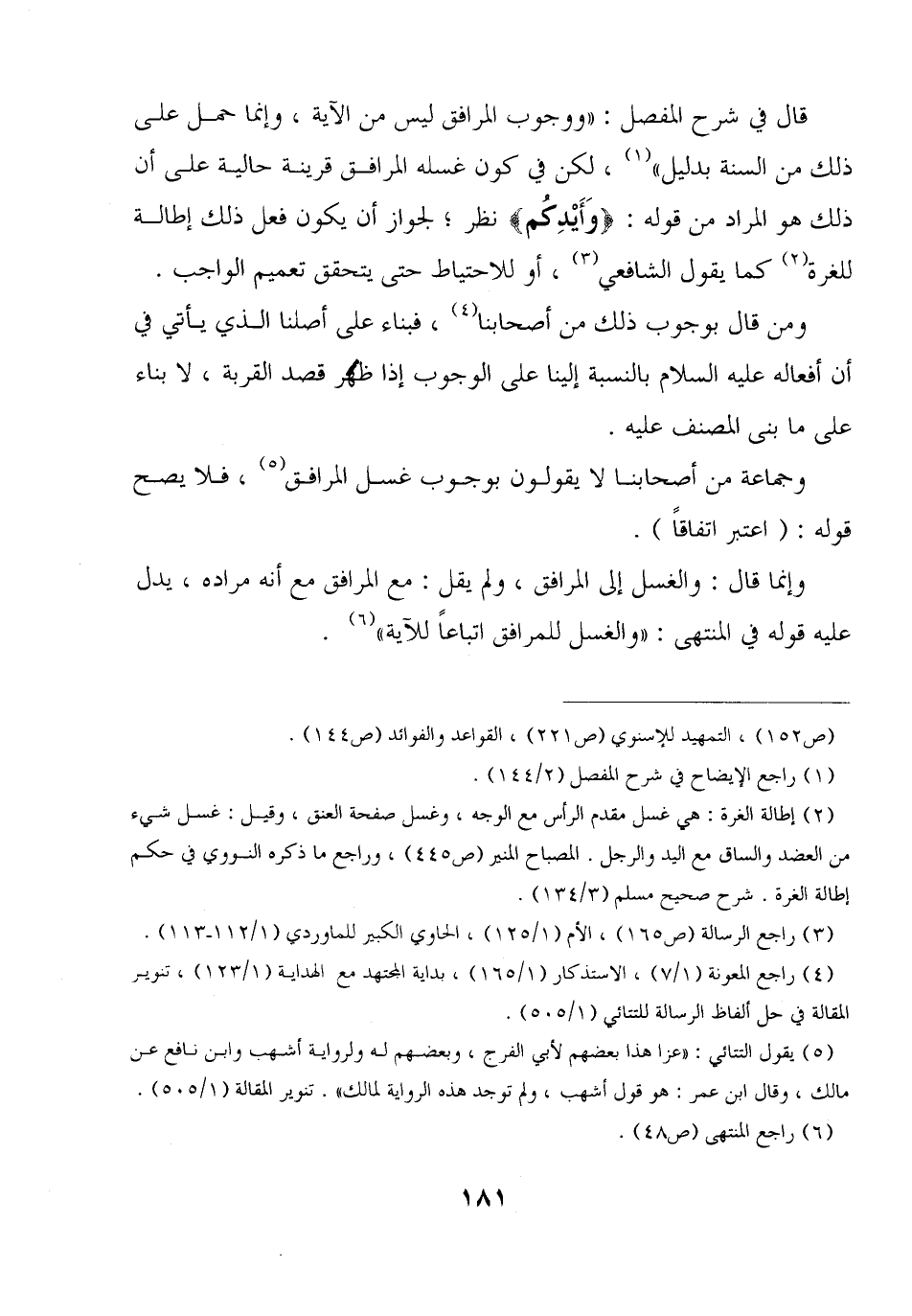 وجماعة من أصحابنا لا يقولون بوجوب غسل المرافق, فلا يصح قوله: (اعتبر اتفاقًا).
