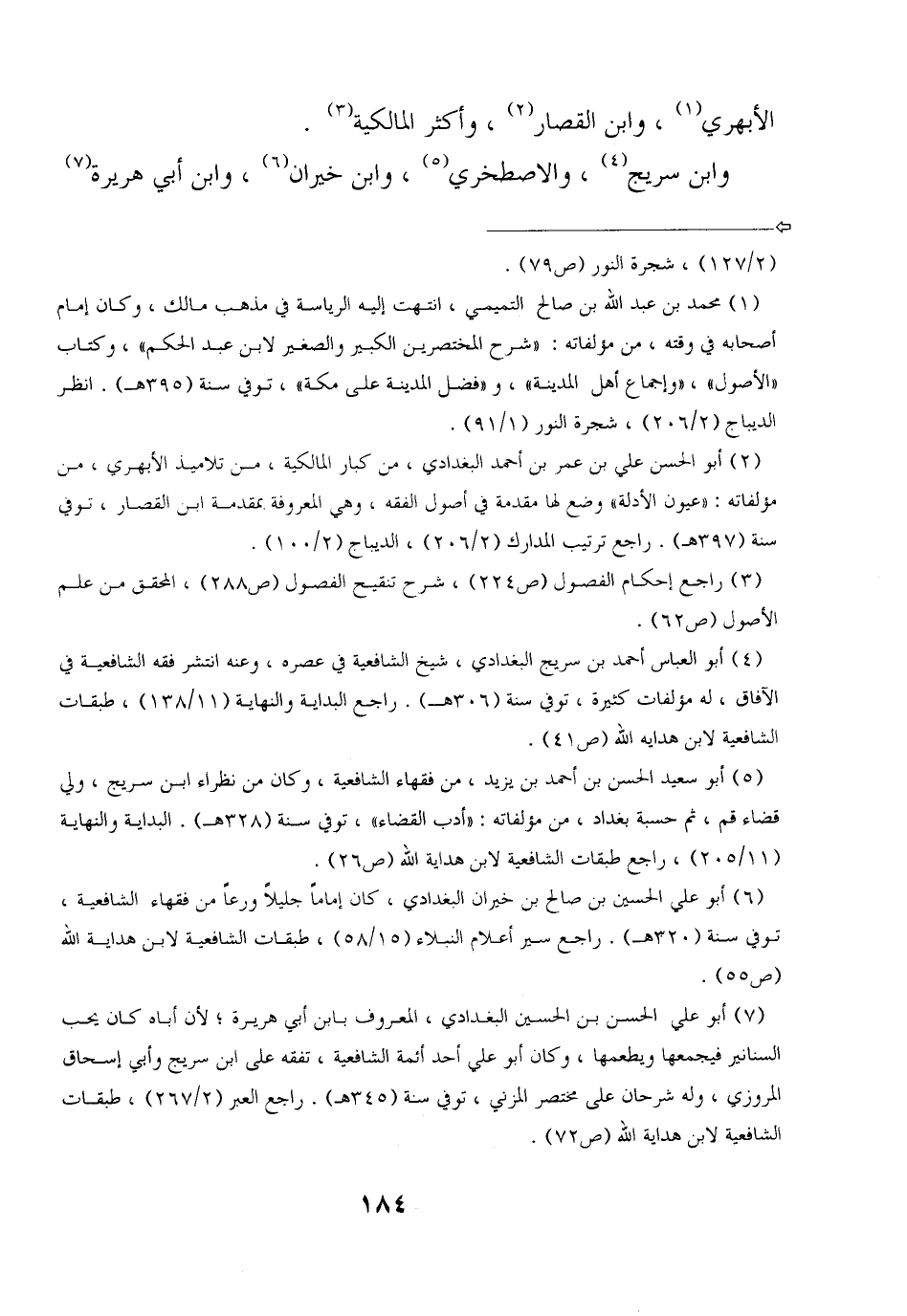 وابن سريج, والاصطخري, وابن خيران, وابن أبي هريرة