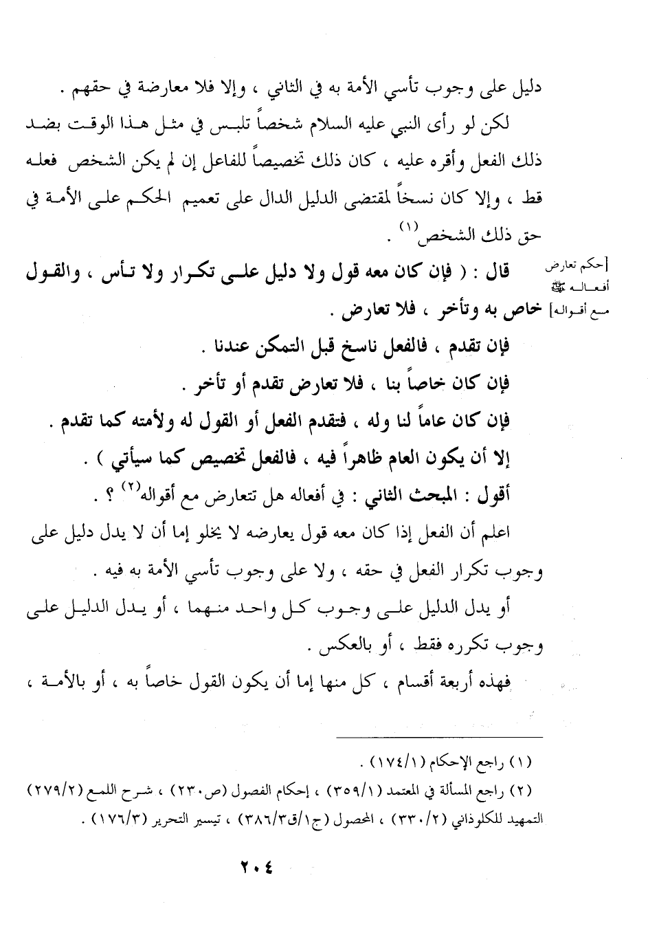 أقول: المبحث الثاني: في أفعاله هل تتعارض مع أقواله؟ .