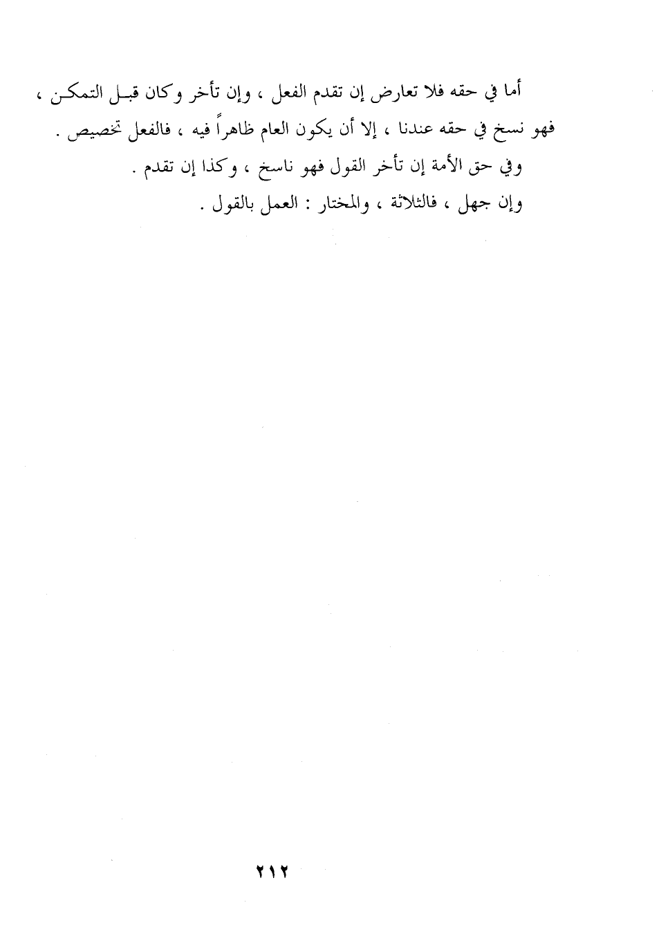 وفي حق الأمة إن تأخر القول فهو ناسخ, وكذا إن تقدم.
