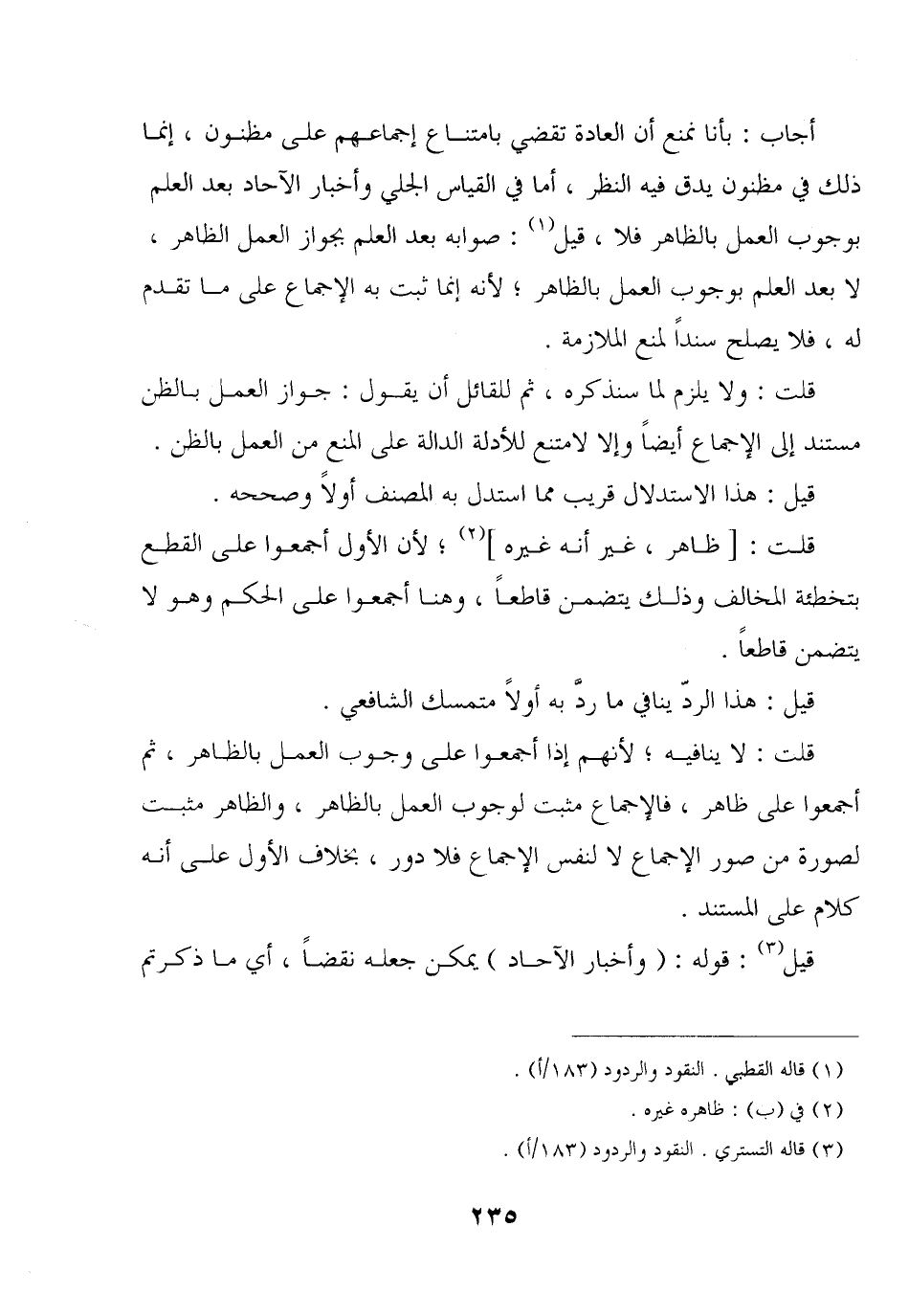 قلت: ولا يلزم لما سنذكر, ثم للقائل أن يقول: جواز العمل بالظن مستند إلى الإجماع أيضًا وإلا لامتنع للأدلة الدالة على المنع من العمل بالظن.