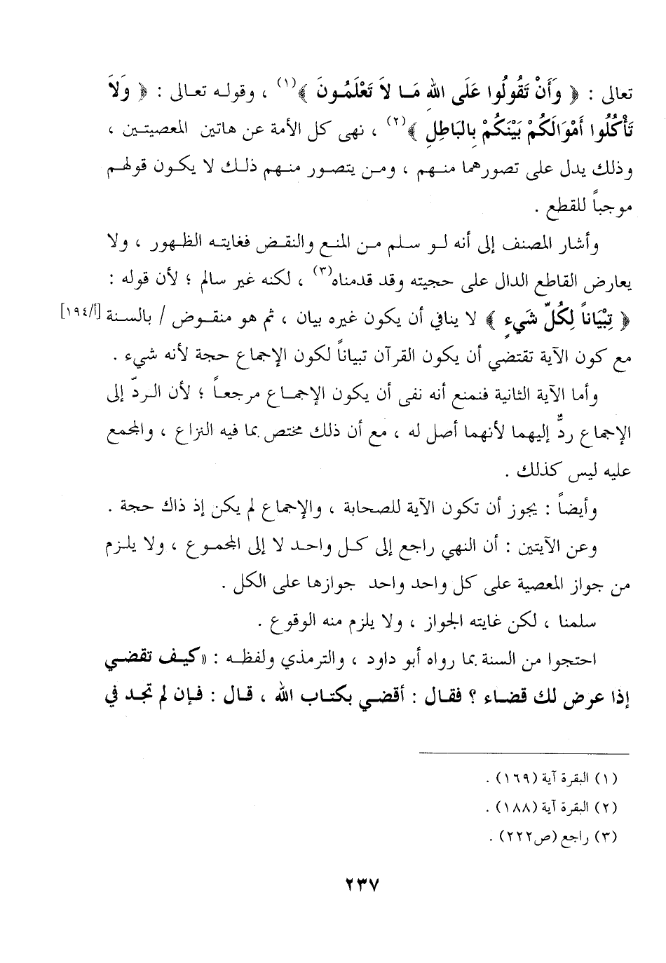 وأما الآية الثانية فنمنع أنه نفى أن يكون الإجماع مرجعًا؛ لأن الردّ إلى الإجماع ردٌّ إليهما لأنهما أصل له, مع أن ذلك مختص بما فيه النزاع, والمجمع عليه ليس كذلك.