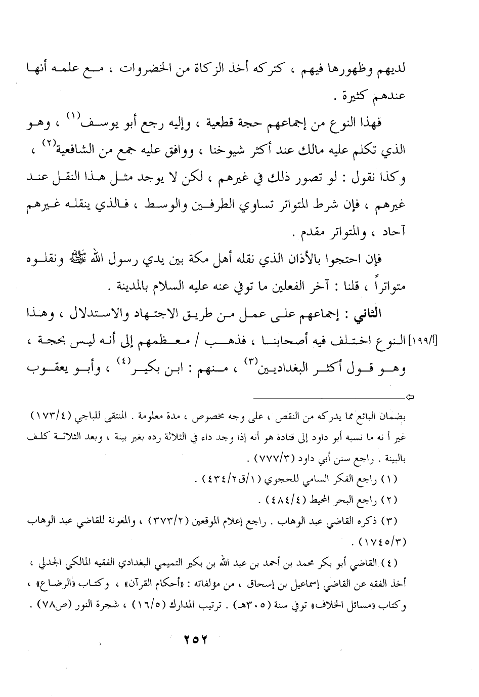 فهذا النوع من إجماعهم حجة قطعية, وإليه رجع أبو يوسف, وهو الذي تكلم عليه مالك عند أكثر شيوخنا, ووافق عليه جمع من الشافعية, وكذا نقول: لو تصور ذلك في غيرهم, لكن لا يوجد مثل هذا النقل عند غيرهم, فإن شرط المتواتر تساوي الطرفين والوسط, فالذي ينقله غيرهم آحاد, والمتواتر مقدم.