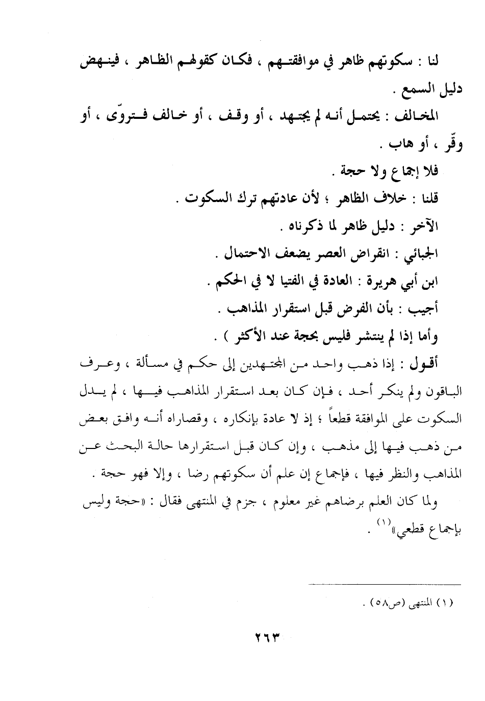 ولما كان العلم برضاهم غير معلوم, جزم في المنتهى فقال: «حجة وليس بإجماع قطعي».