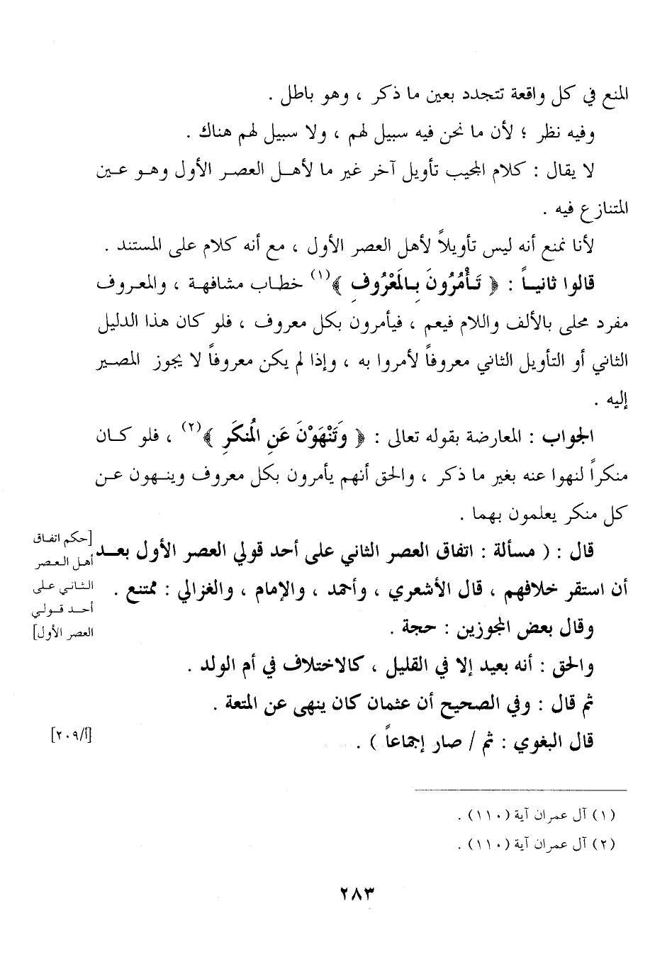 قالوا ثانيًا: {تأمرون بالمعروف} خطاب مشافهة, والمعروف مفرد محلى بالألف واللام فيعم, فيأمرون بكل معروف, فلو كان هذا الدليل الثاني أو التأويل الثاني معروفًا لأمروا به, وإذا لم يكن معروفًا لا يجوز المصير إليه.
