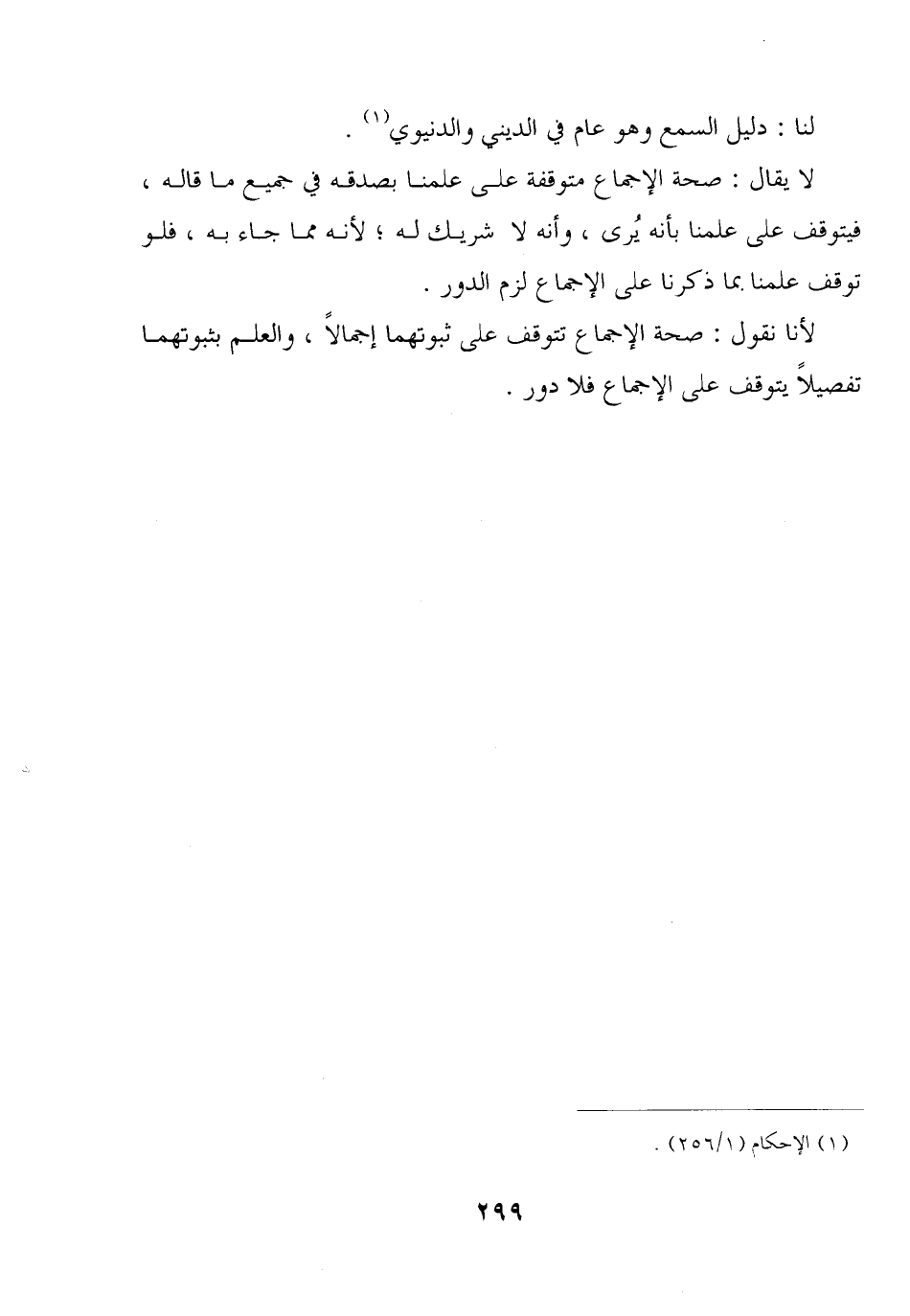 لا يقال: صحة الإجماع متوقفة على علمنا بصدقه في جميع ما قاله, فيتوقف على علمنا بأنه يُرى, وأنه لا شريك له؛ لأنه مما جاء به, فلو توقف علمنا بما ذكرنا على الإجماع لزم الدور.