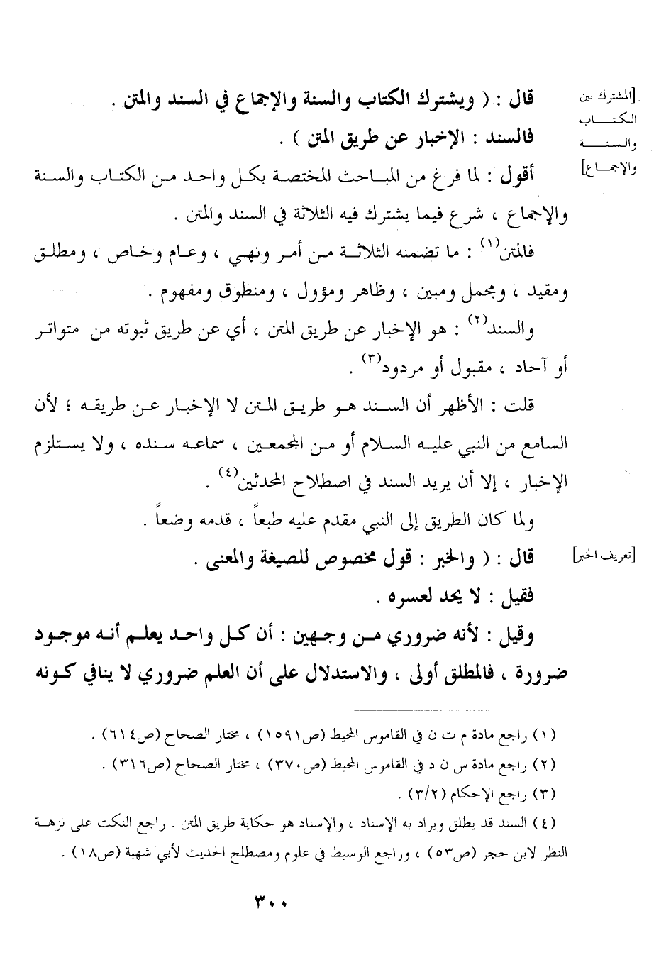 قال: (ويشترك الكتاب والسنة والإجماع في السند والمتن.