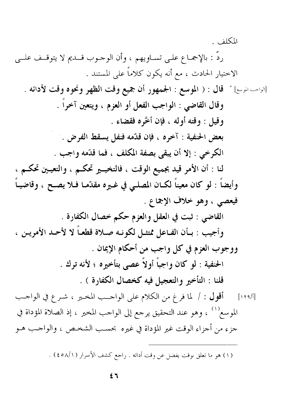 أقول: لما فرغ من الكلام على الواجب المخير, شرع في الواجب الموسع, وهو عند التحقيق يرجع إلى الواجب المخير, إذ الصلاة المؤداة في جزء من أجزاء الوقت غير المؤداة في غيره بحسب الشخص, والواجب هو