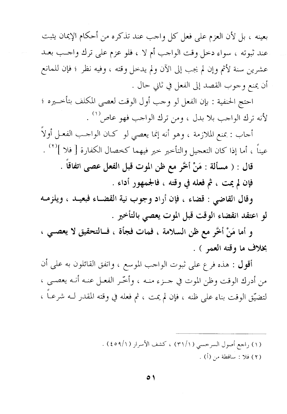 بعينه, بل لأن العزم على فعل كل واجب عند ت ذكره من أحكام لإيمان يثبت عند ثبوته, سواء دخل وقت الواجب أم لا, فلو عزم على ترك واجب بعد عشرين سنة لأثم وإن لم يجب إلى الآن ولم يدخل وقته, وفيه نظر؛ فإن للمانع أن يمنع وجوب القصد إلى الفعل في ثاني حال.