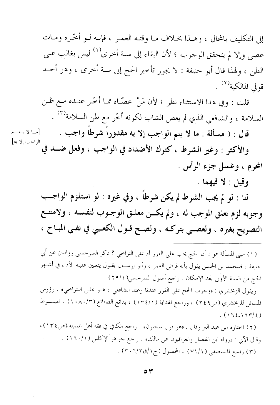 قال: (مسألة: ما لا يتم الواجب إلا به مقدورًا شرطًا واجب.