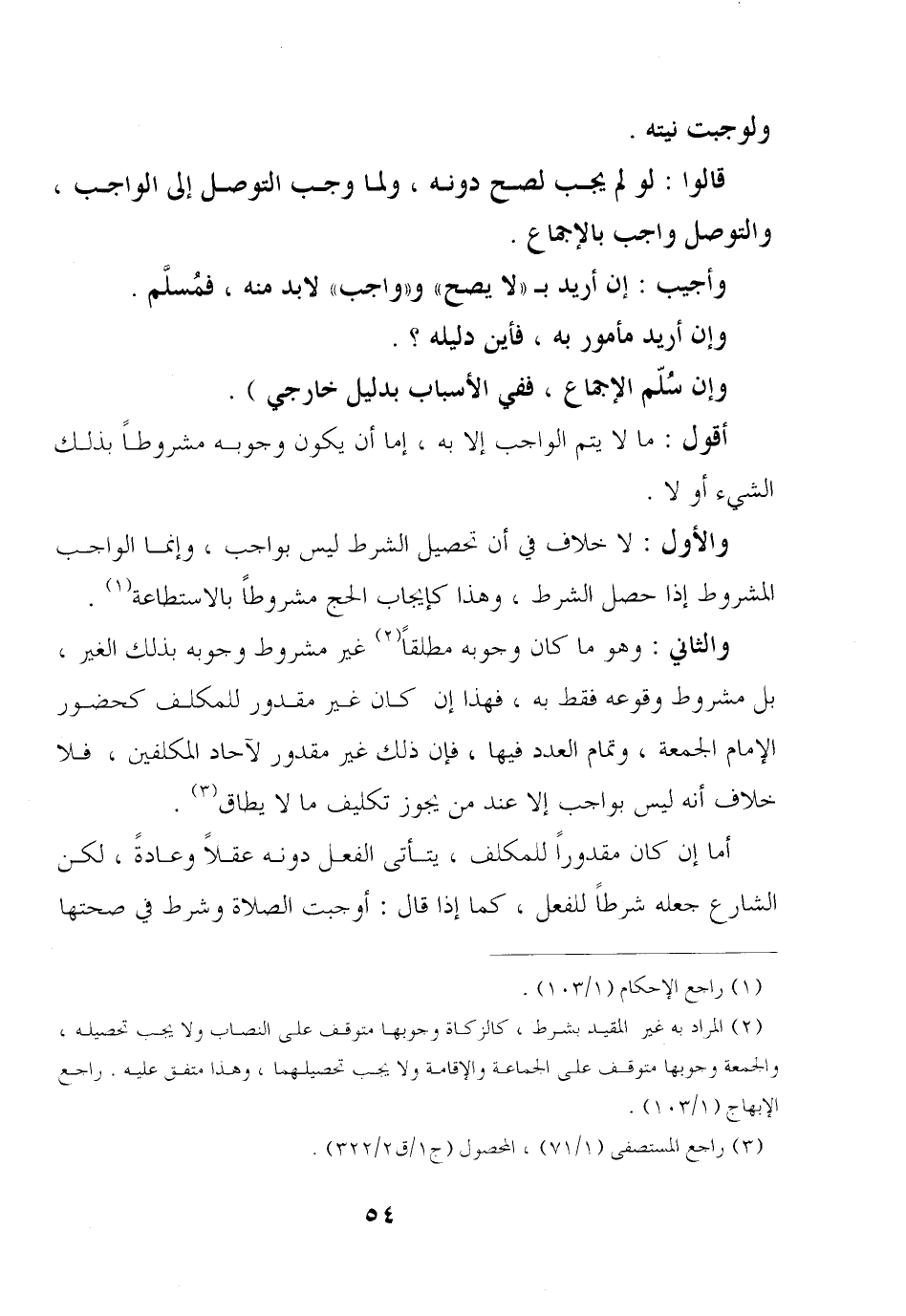 أقول: ما لا يتم الواجب إلا به, إما أن يكون وجوبه مشروطًا بذلك الشيء أو لا.