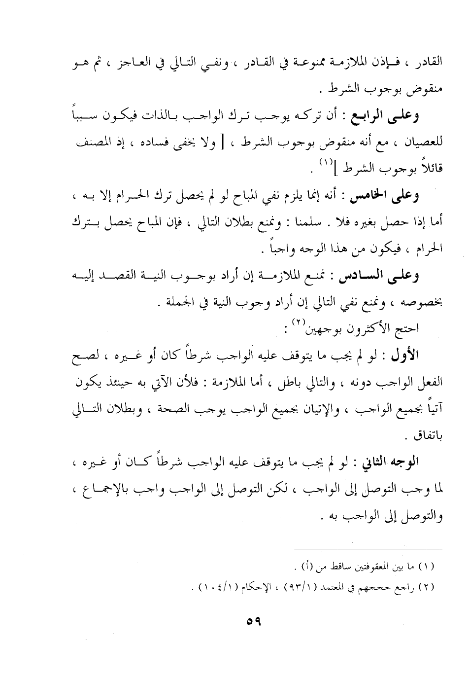 القادر, فإذن الملازمة ممنوعة في القادر, ونفي التالي في العاجز, ثم هو منقوض بوجوب الشرط.