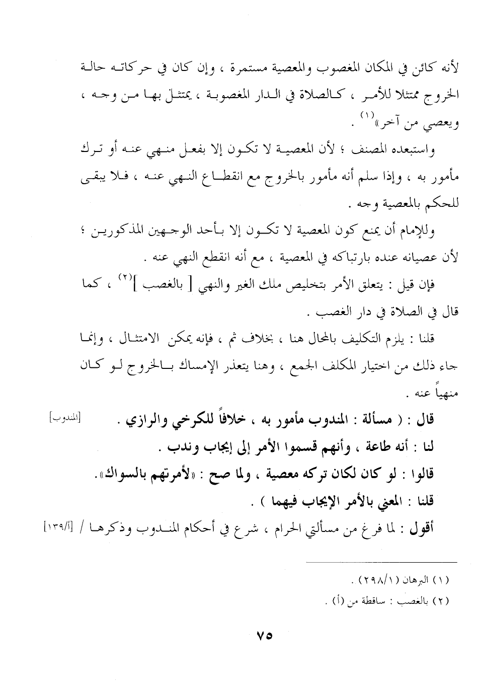 أقول: لما فرغ من مسألتي الحرام, شرع في أحكام المندوب وذكرها