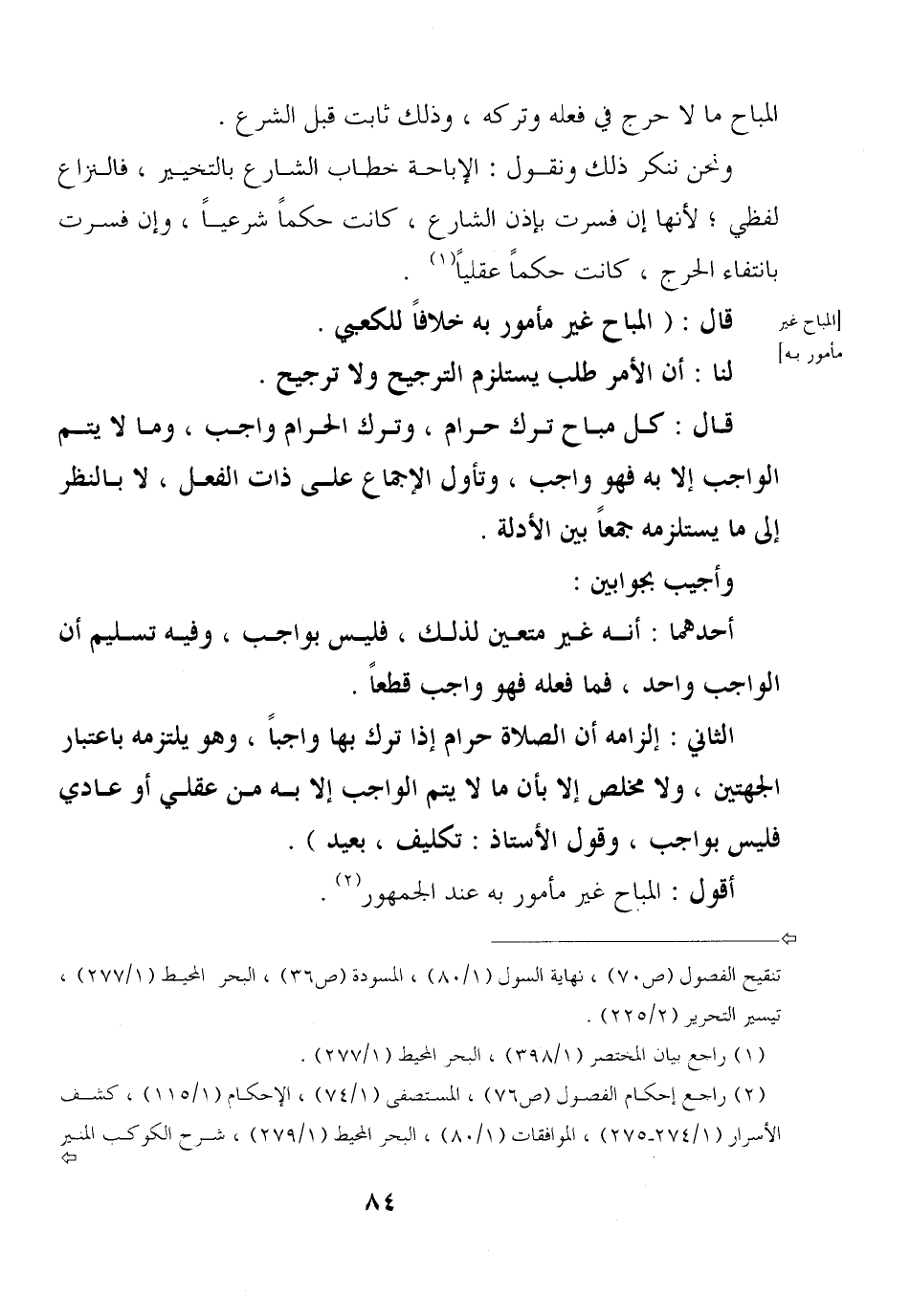 قال: (المباح غير مأمور به خلافًا للكعبي.