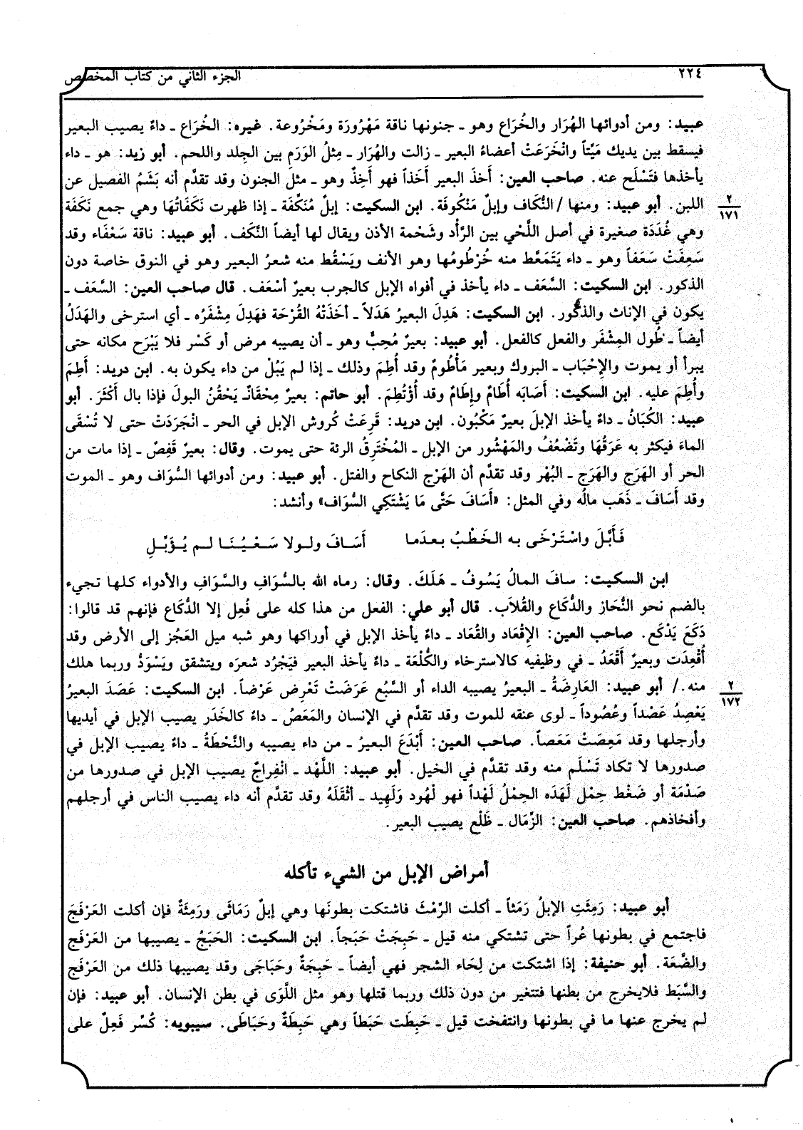 3 - أمراض الْإِبِل من الشَّيْء تَأْكُله