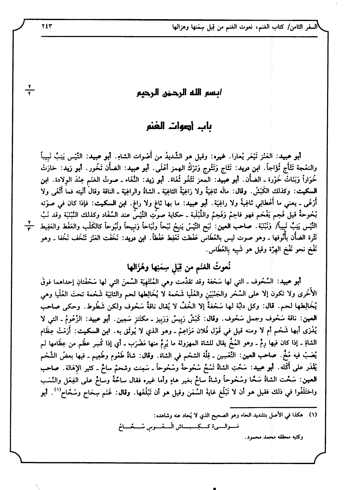 (نُعوتُ الغنَم من قِبَل سِمَنِها وهُزَالها)