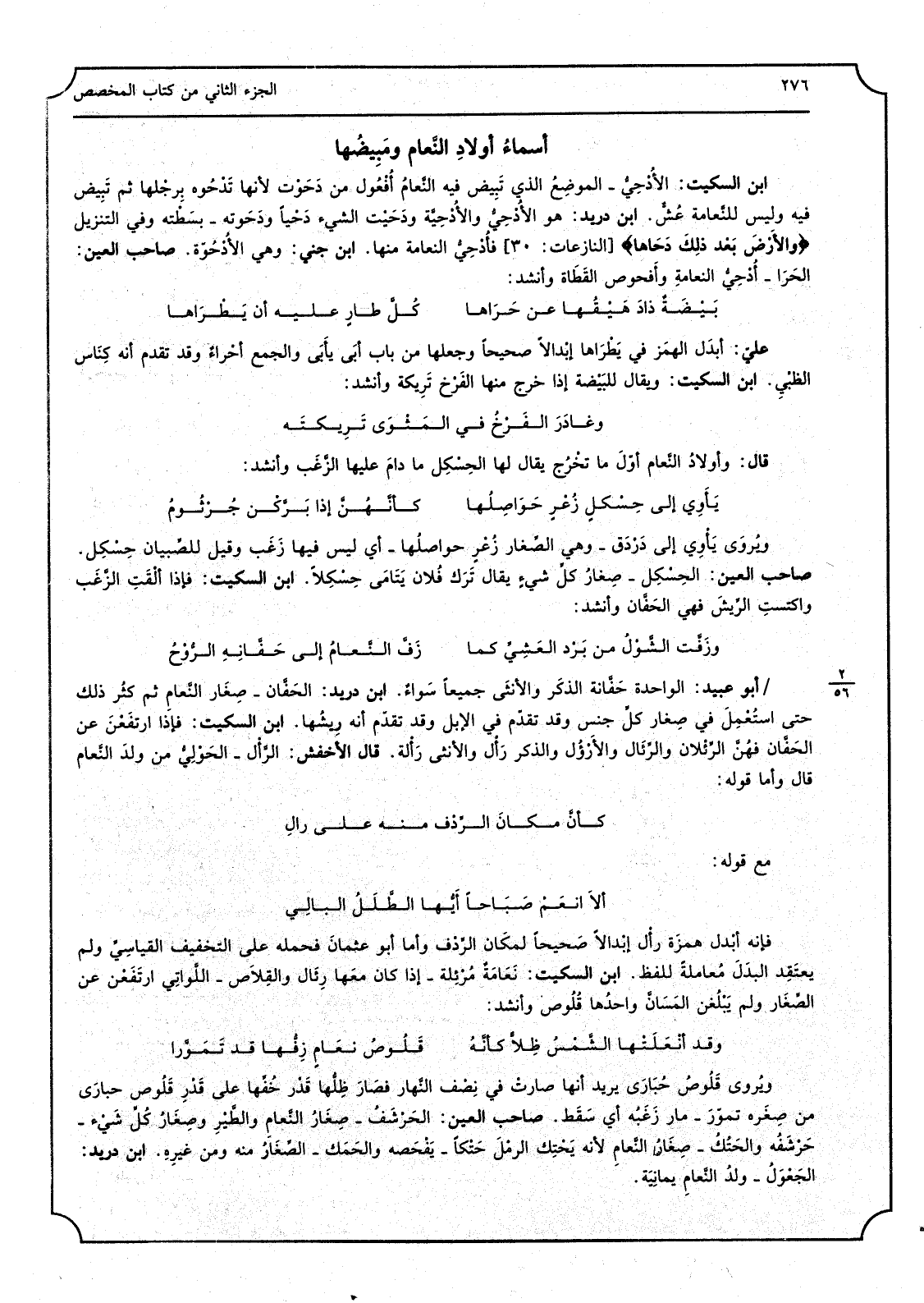(أسماءُ أولادِ النَّعام ومَبِيضُها)