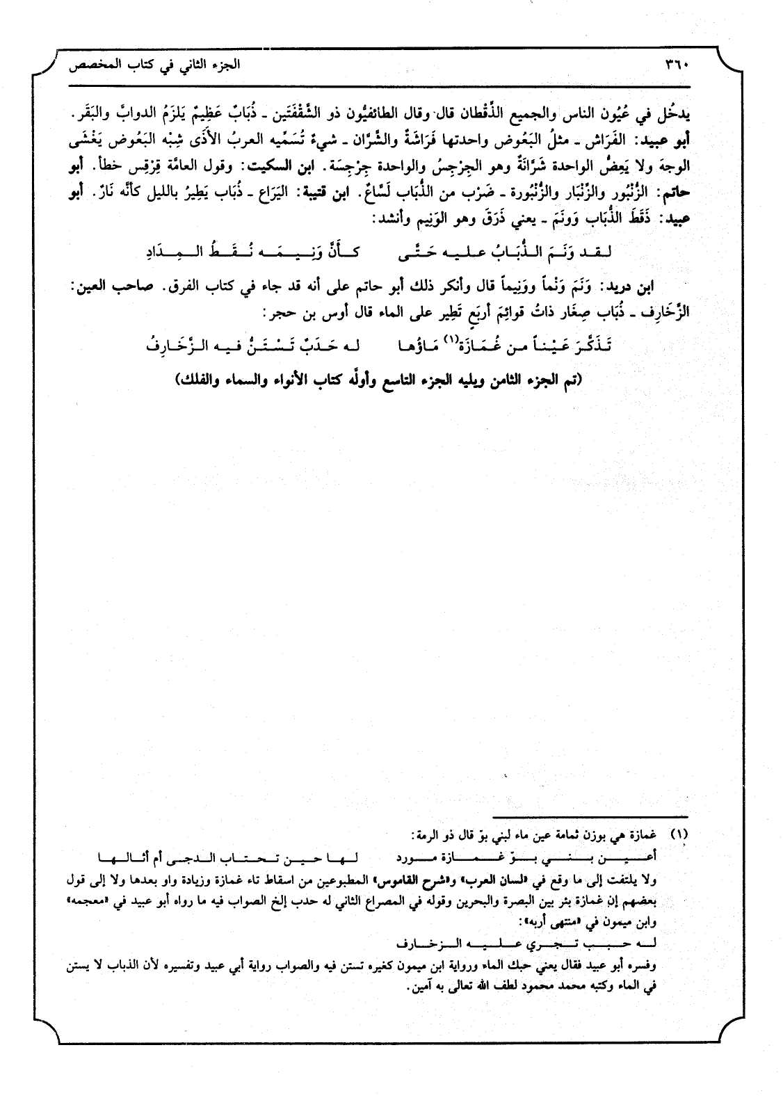 (تمّ الْجُزْء الثَّامِن ويليه الْجُزْء التَّاسِع وأولَّه كتاب الأنواء وَالسَّمَاء والفلك)