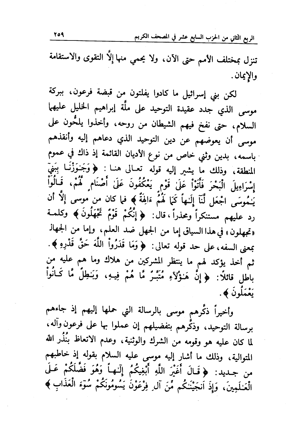 وأخيرا ذكرهم موسى بالرسالة التي حملها إليهم إذ جاءهم برسالة التوحيد، وذكرهم بتفضيلهم إن عملوا بها على فرعون وآله، لما كان عليه هو وقومه من الشرك والوثنية، وعدم الاتعاظ بنذر الله المتوالية، وذلك ما أشار إليه موسى عليه السلام بقوله إذ خاطبهم من جديد: {قَالَ أَغَيْرَ اللَّهِ أَبْغِيكُمْ إِلَهًا وَهُوَ فَضَّلَكُمْ عَلَى الْعَالَمِينَ * وَإِذْ أَنْجَيْنَاكُمْ مِنْ آلِ فِرْعَوْنَ يَسُومُونَكُمْ سُوءَ الْعَذَابِ}