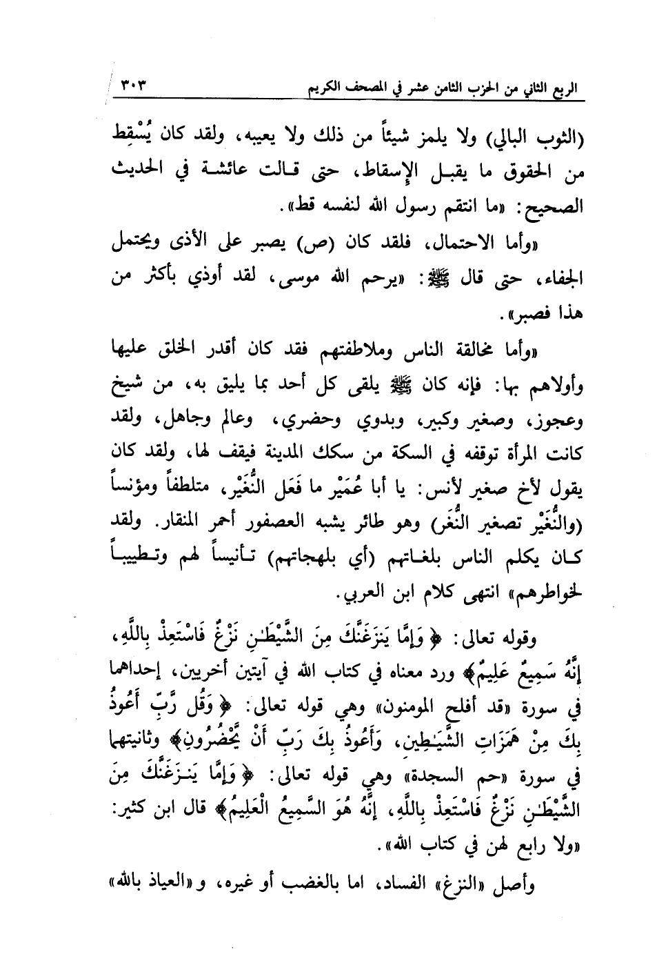 وقوله تعالى: {وَإِمَّا يَنْزَغَنَّكَ مِنَ الشَّيْطَانِ نَزْغٌ فَاسْتَعِذْ بِاللَّهِ إِنَّهُ سَمِيعٌ عَلِيمٌ} ورد معناه في كتاب الله في آيتين أخريين، وإحداهما في سورة {قَدْ أَفْلَحَ الْمُؤْمِنُونَ} وهي قوله تعالى: {وَقُلْ رَبِّ أَعُوذُ بِكَ مِنْ هَمَزَاتِ الشَّيَاطِينِ * وَأَعُوذُ بِكَ رَبِّ أَنْ يَحْضُرُونِ} وثانيتهما في سورة (حم السجدة) وهي قوله تعالى: {وَإِمَّا يَنْزَغَنَّكَ مِنَ الشَّيْطَانِ نَزْغٌ فَاسْتَعِذْ بِاللَّهِ إِنَّهُ هُوَ السَّمِيعُ الْعَلِيمُ} قال ابن كثير: " ولا رابع لهن في كتاب الله ".