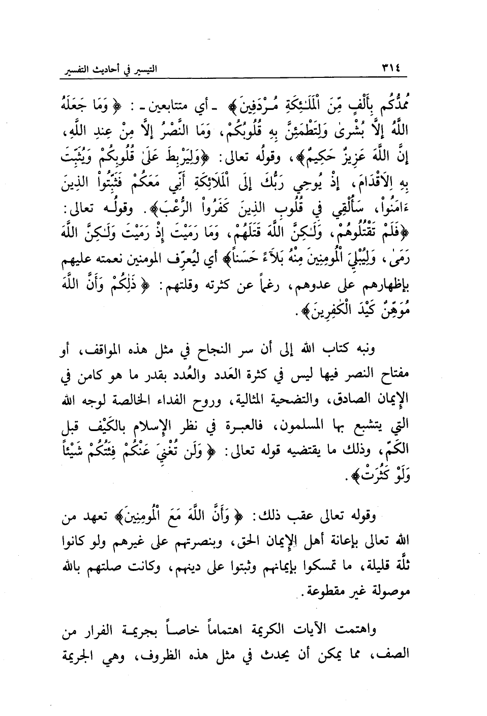 واهتمت الآيات الكريمة اهتماما خاصا بجريمة الفرار من الصف، مما يمكن أن يحدث في مثل هذه الظروف، وهي الجريمة