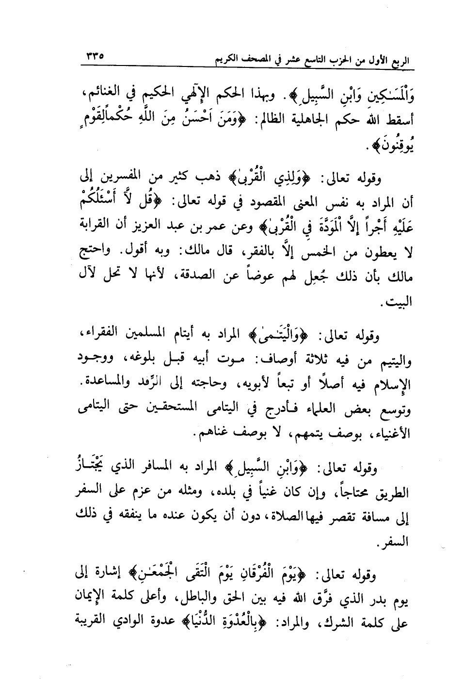 وَالْمَسَاكِينِ وَابْنِ السَّبِيلِ} وبهذا الحكم الإلهي الحكيم في الغنائم، أسقط الله حكم الجاهلية الظالم: {وَمَنْ أَحْسَنُ مِنَ اللَّهِ حُكْمًا لِقَوْمٍ يُوقِنُونَ}.