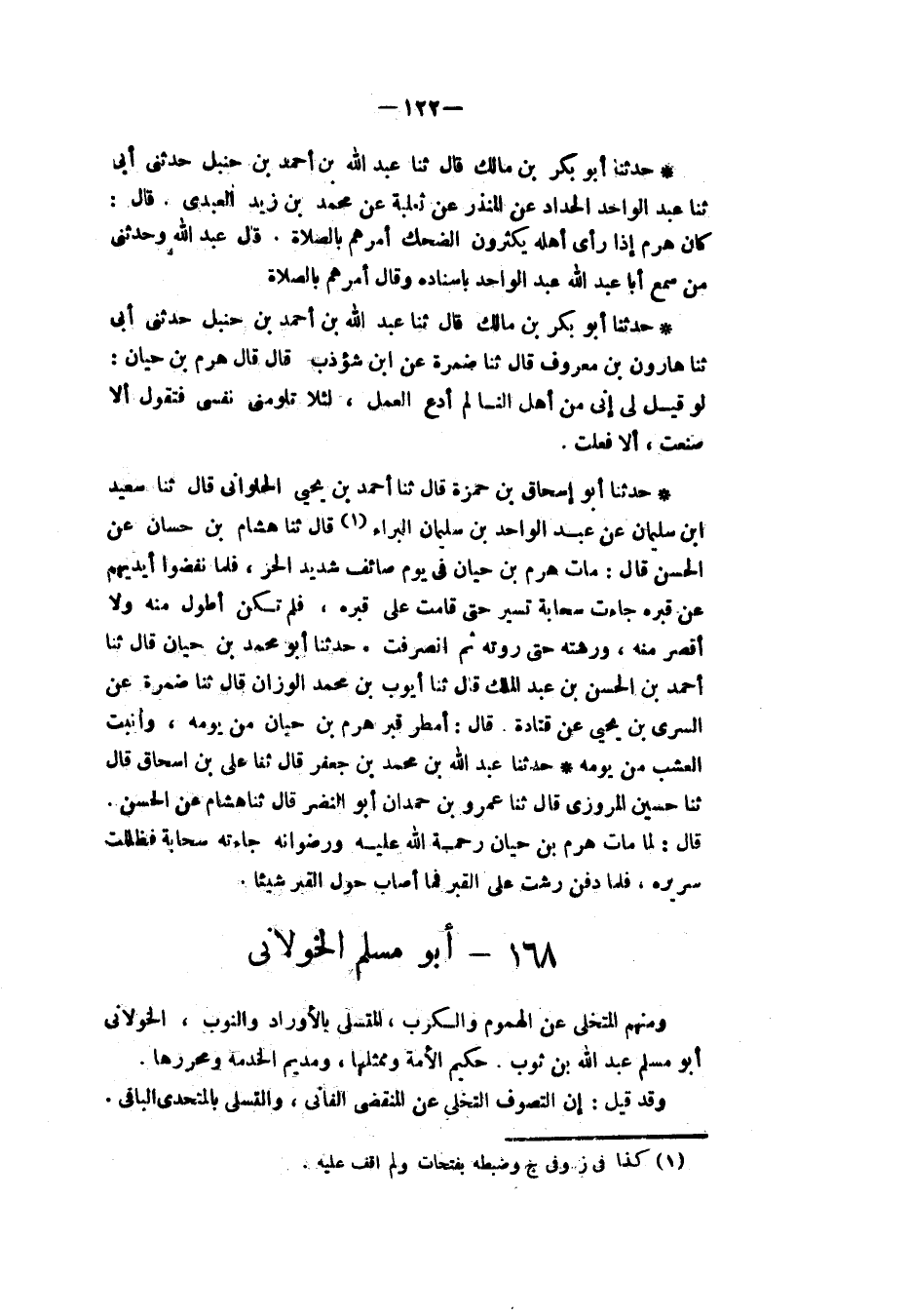 §أَبُو مُسْلِمٍ الْخَوْلَانِيُّ وَمِنْهُمُ الْمُتَخَلِّي عَنِ الْهُمُومِ وَالْكُرَبِ، الْمُتَسَلِّي بِالْأَوْرَادِ وَالنُّوَبِ الْخَوْلَانِيُّ أَبُو مُسْلِمٍ عَبْدُ اللهِ بْنُ ثَوْبٍ حَكِيمُ الْأُمَّةِ وَمُمَثِّلُهَا وَمُدِيمُ الْخِدْمَةِ وَمُحَرِّرُهَا وَقَدْ قِيلَ: إِنَّ التَّصَوُّفَ التَّخَلِّي عَنِ الْمُنْقَضِي الْفَانِي، وَالْمُتَسَلِّي بِالْمُتَحَدِّي الْبَاقِي