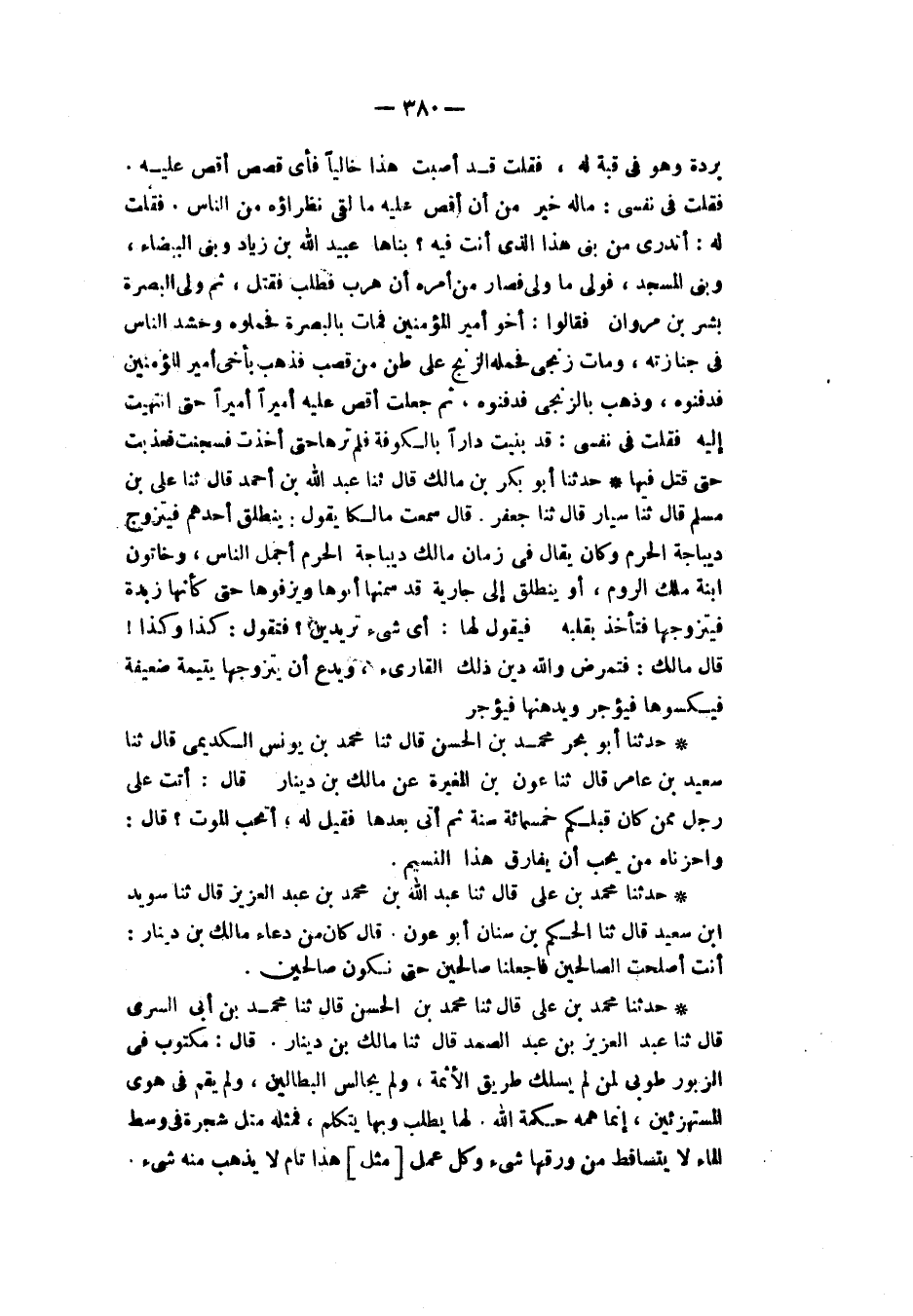 حَدَّثَنَا مُحَمَّدُ بْنُ عَلِيٍّ، قَالَ: ثَنَا عَبْدُ اللهِ بْنُ مُحَمَّدِ بْنِ عَبْدِ الْعَزِيزِ، قَالَ: ثَنَا سُوَيْدُ بْنُ سَعِيدٍ، قَالَ: ثَنَا الْحَكَمُ بْنُ سِنَانٍ أَبُو عَوْنٍ، قَالَ: كَانَ مِنْ دُعَاءِ مَالِكِ بْنِ دِينَارٍ: «§أَنْتَ أَصْلَحْتَ الصَّالِحِينَ فَاجْعَلْنَا صَالِحِينَ حَتَّى نَكُونَ صَالِحَيْنِ»
