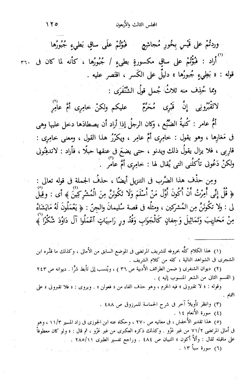 (¬1) هذا الكلام كلّه بحروفه للشريف المرتضى فى الموضع السابق من الأمالى، وكذلك ما قدّره ابن الشجرى فى الشواهد التالية، كله من كلام الشريف.