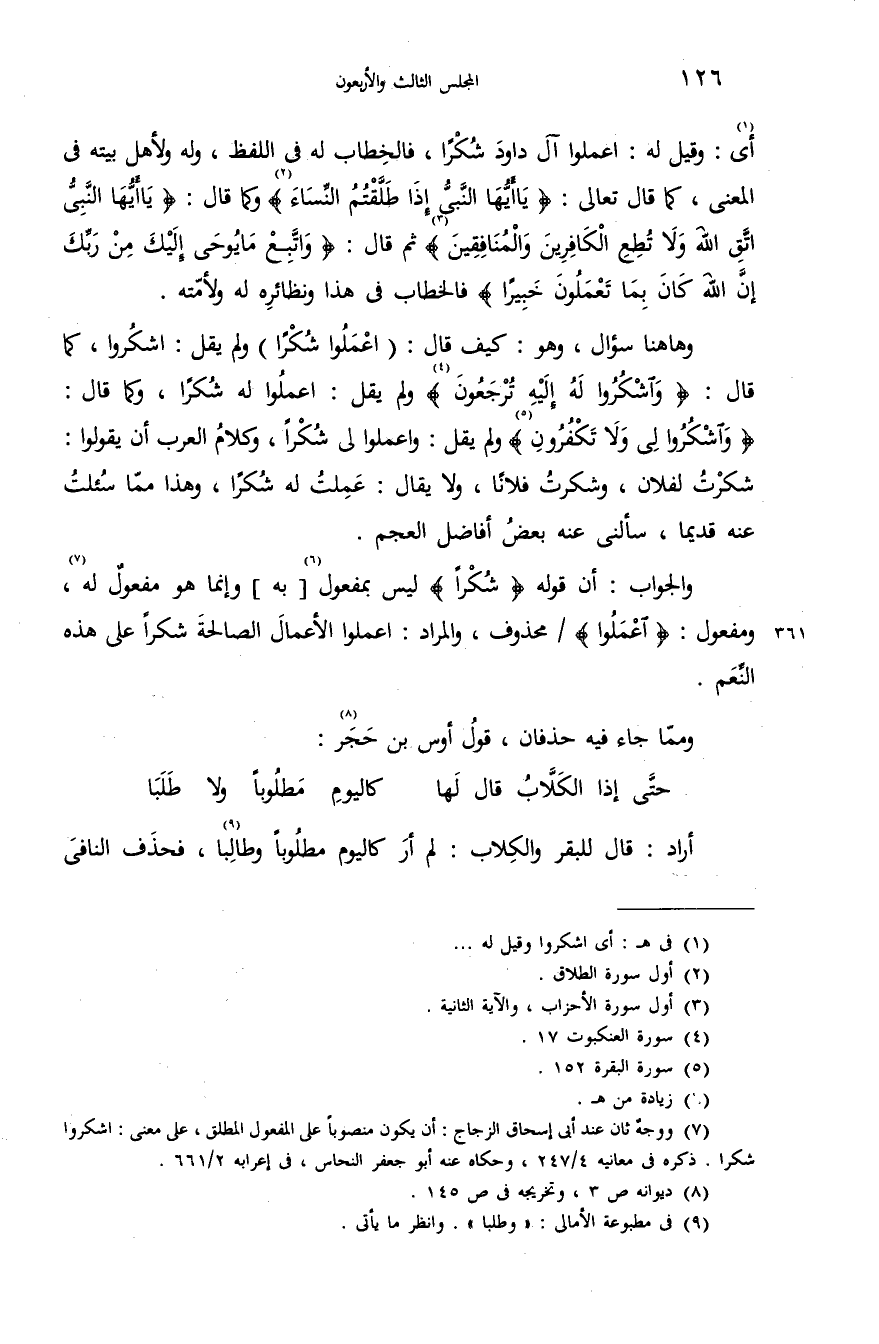 والجواب: أن قوله {شُكْراً} ليس بمفعول (¬6) [به] وإنما هو مفعول له (¬7)، ومفعول: {اِعْمَلُوا} /محذوف، والمراد: اعملوا الأعمال الصالحة شكرا على هذه النّعم.