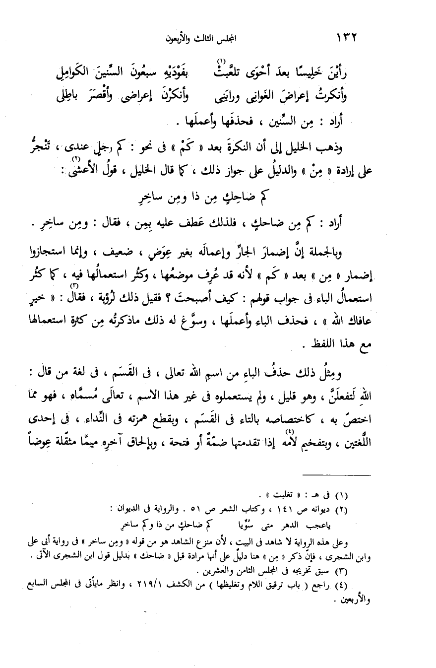 (¬4) راجع (باب ترقيق اللام وتغليظها) من الكشف 1/ 219، وانظر ما يأتى فى المجلس السابع والأربعين.