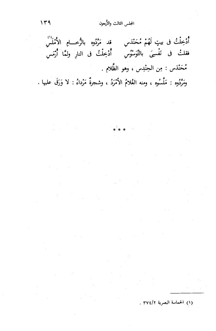 أدخلت فى بيت لهم محندس … قد مرّدوه بالرّخام الأملس (¬1)
