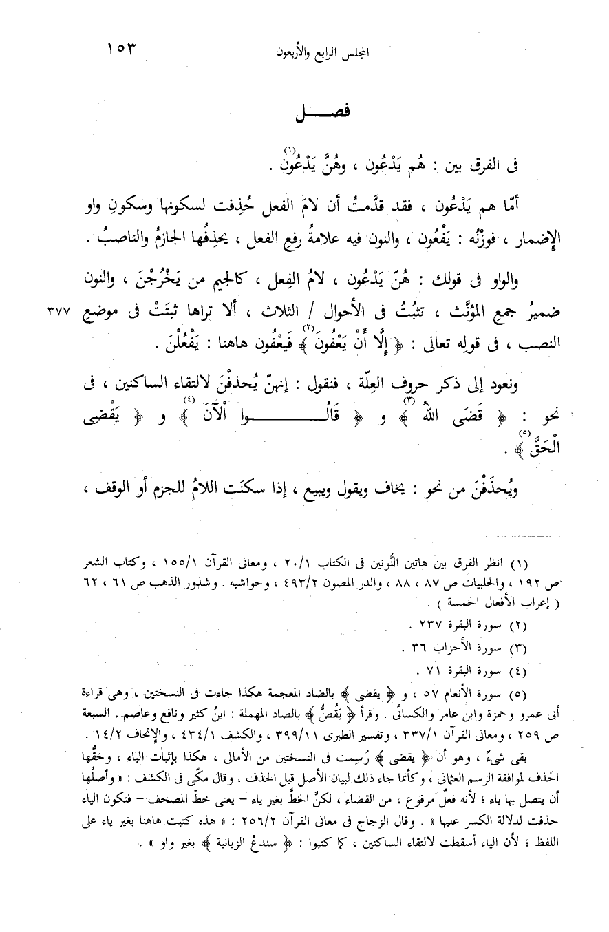 (¬1) انظر الفرق بين هاتين النّونين فى الكتاب 1/ 20، ومعانى القرآن 1/ 155، وكتاب الشعر ص 192، والحلبيات ص 87،88، والدر المصون 2/ 493، وحواشيه. وشذور الذهب ص 61،62 (إعراب الأفعال الخمسة).