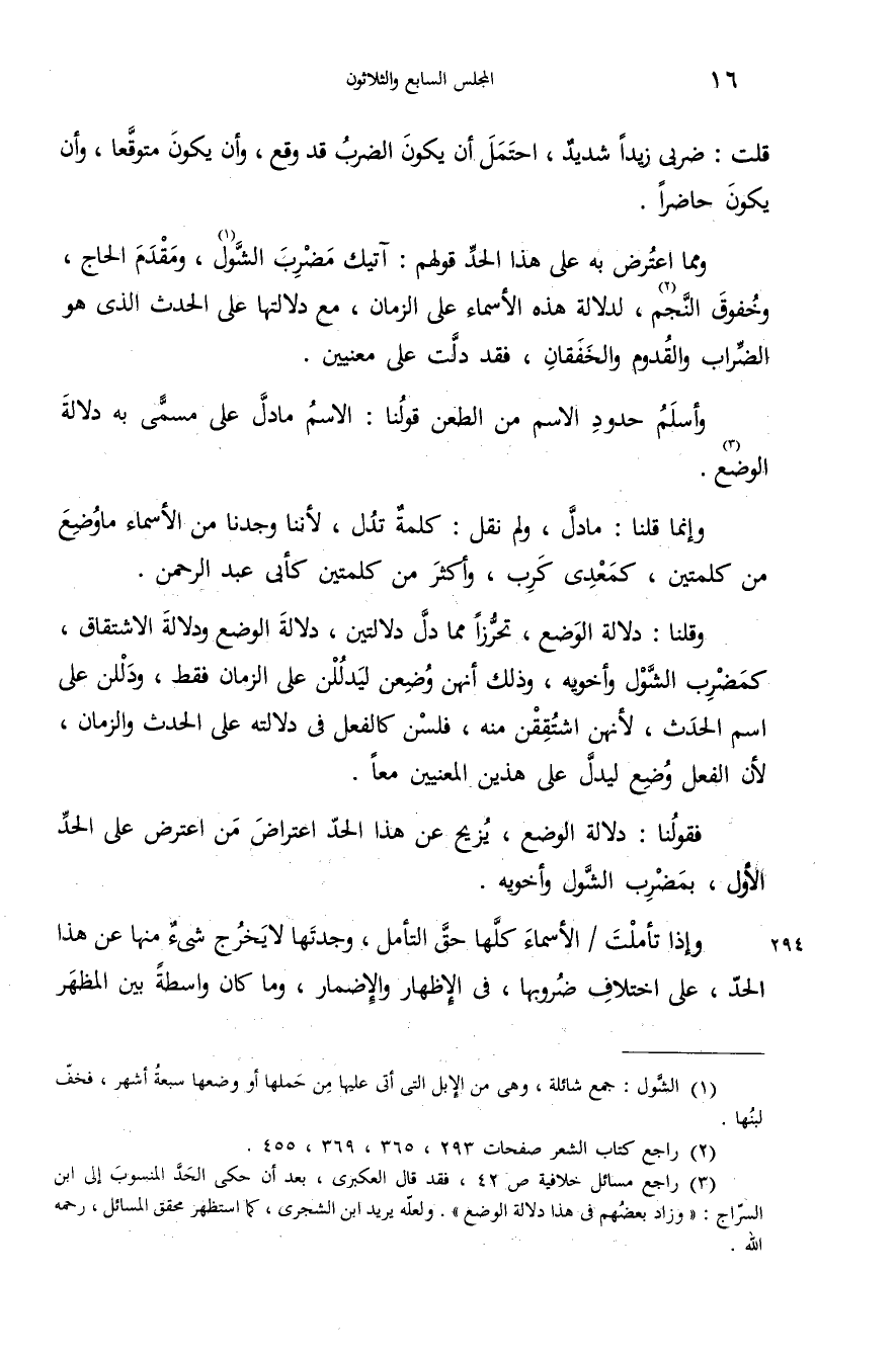 (¬3) راجع مسائل خلافية ص 42، فقد قال العكبرى، بعد أن حكى الحدّ المنسوب إلى ابن السرّاج: «وزاد بعضهم فى هذا دلالة الوضع». ولعلّه يريد ابن الشجرى، كما استظهر محقق المسائل، رحمه الله.