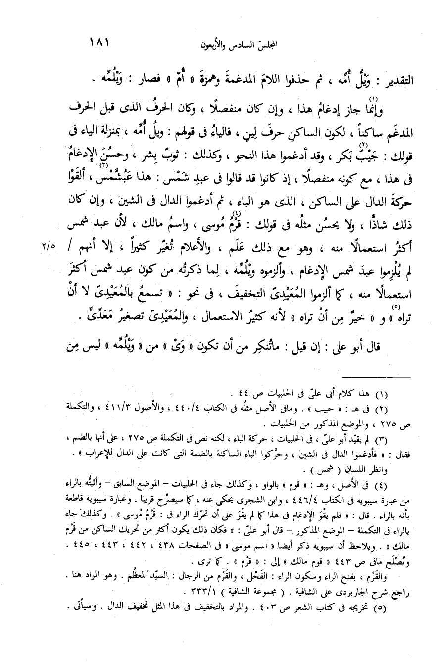 (¬1) هذا كلام أبى علىّ فى الحلبيات ص 44.