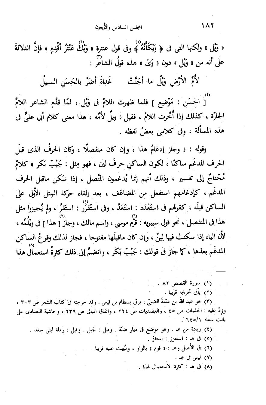 (¬3) هو عبد الله بن عنمة الضبىّ، يرثى بسطام بن قيس. وقد خرجته فى كتاب الشعر ص 303، وزد عليه: الحلبيات ص 45، والعضديات ص 224، واتفاق المبانى ص 239، وحاشية البغدادى على بانت سعاد 1/ 645.