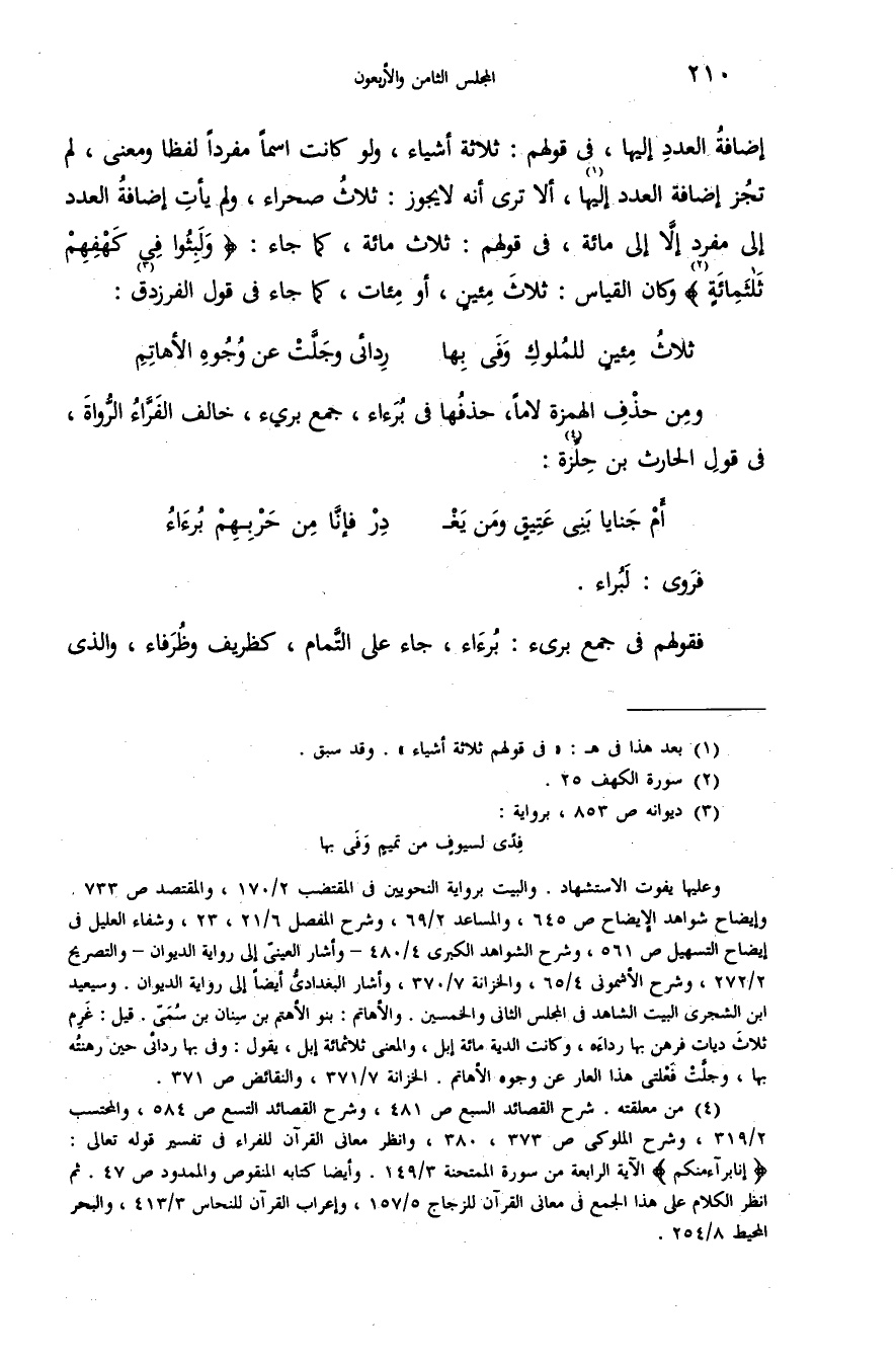 (¬4) من معلقته. شرح القصائد السبع ص 481، وشرح القصائد التسع ص 584، والمحتسب 2/ 319، وشرح الملوكى ص 373،380، وانظر معانى القرآن للفراء فى تفسير قوله تعالى: إِنّا بُرَآؤُا مِنْكُمْ الآية الرابعة من سورة الممتحنة 3/ 149. وأيضا كتابه المنقوص والممدود ص 47. ثم انظر الكلام على هذا الجمع فى معانى القرآن للزجاج 5/ 157، وإعراب القرآن للنحاس 3/ 413، والبحر المحيط 8/ 254.