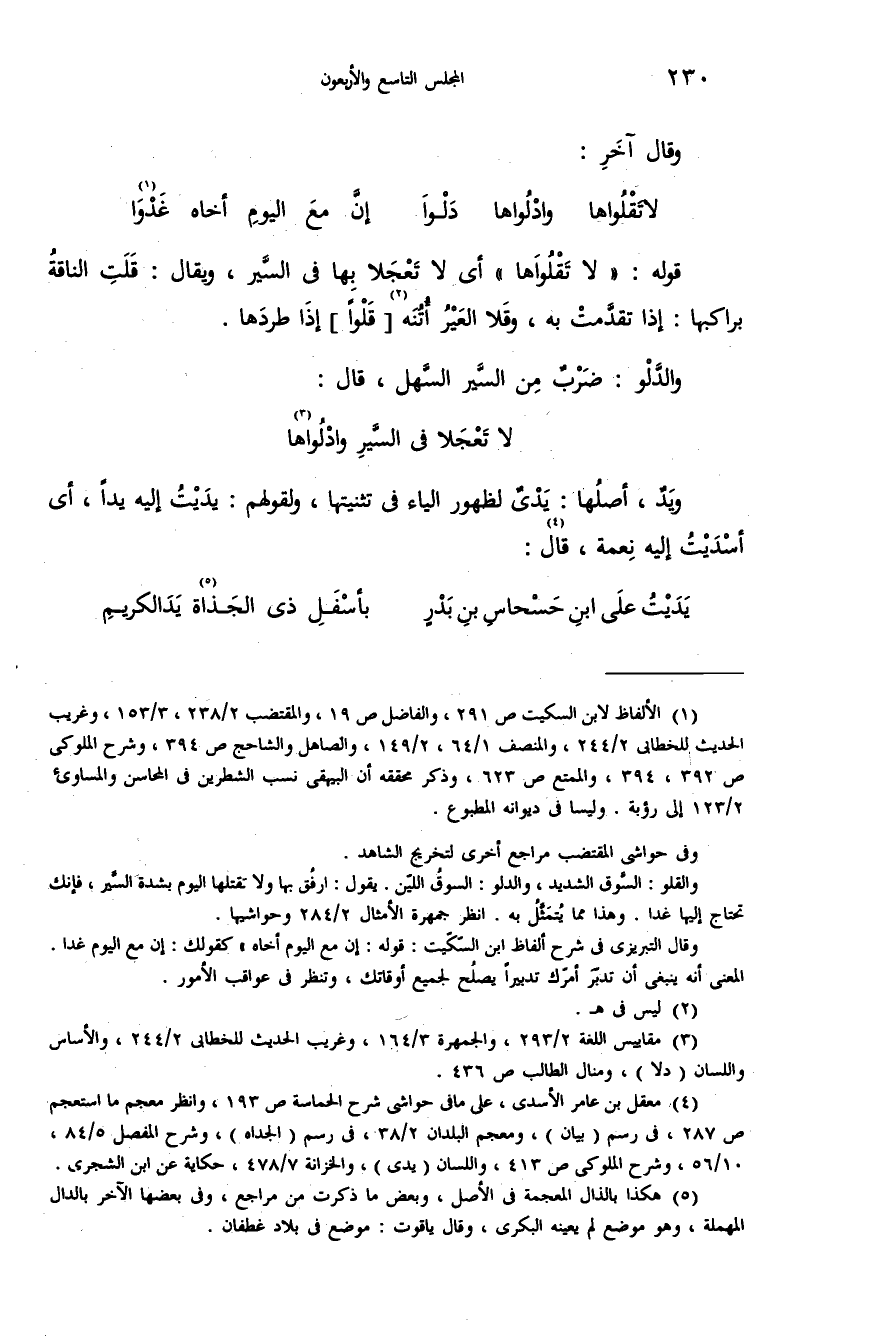 (¬3) مقاييس اللغة 2/ 293، والجمهرة 3/ 164، وغريب الحديث للخطابى 2/ 244، والأساس واللسان (دلا)، ومنال الطالب ص 436.