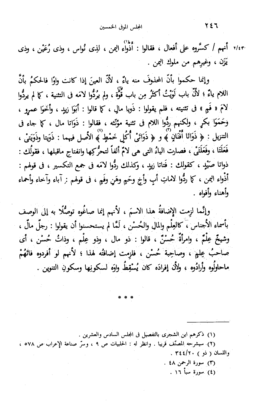 أذواء اليمن، كما ردّوا لامات أب وأخ وحم وهن وفم، فى قولهم: آباء وآخاء وأحماء وأهناء وأفواه.