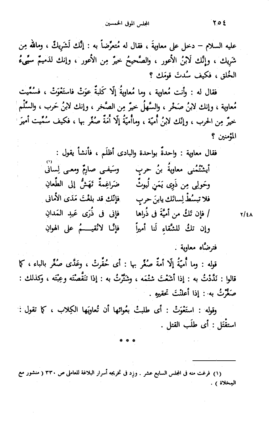 (¬1) فرغت منه فى المجلس السابع عشر. وزد فى تخريجه أسرار البلاغة للعاملى ص 330 (منشور مع المخلاة).