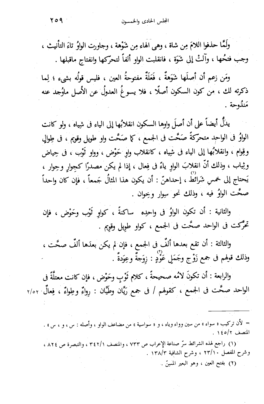 (¬1) راجع لهذه الشرائط سرّ صناعة الإعراب ص 733، والمنصف 1/ 342، والتبصرة ص 824، وشرح المفصل 10/ 23، وشرح الشافية 3/ 138.