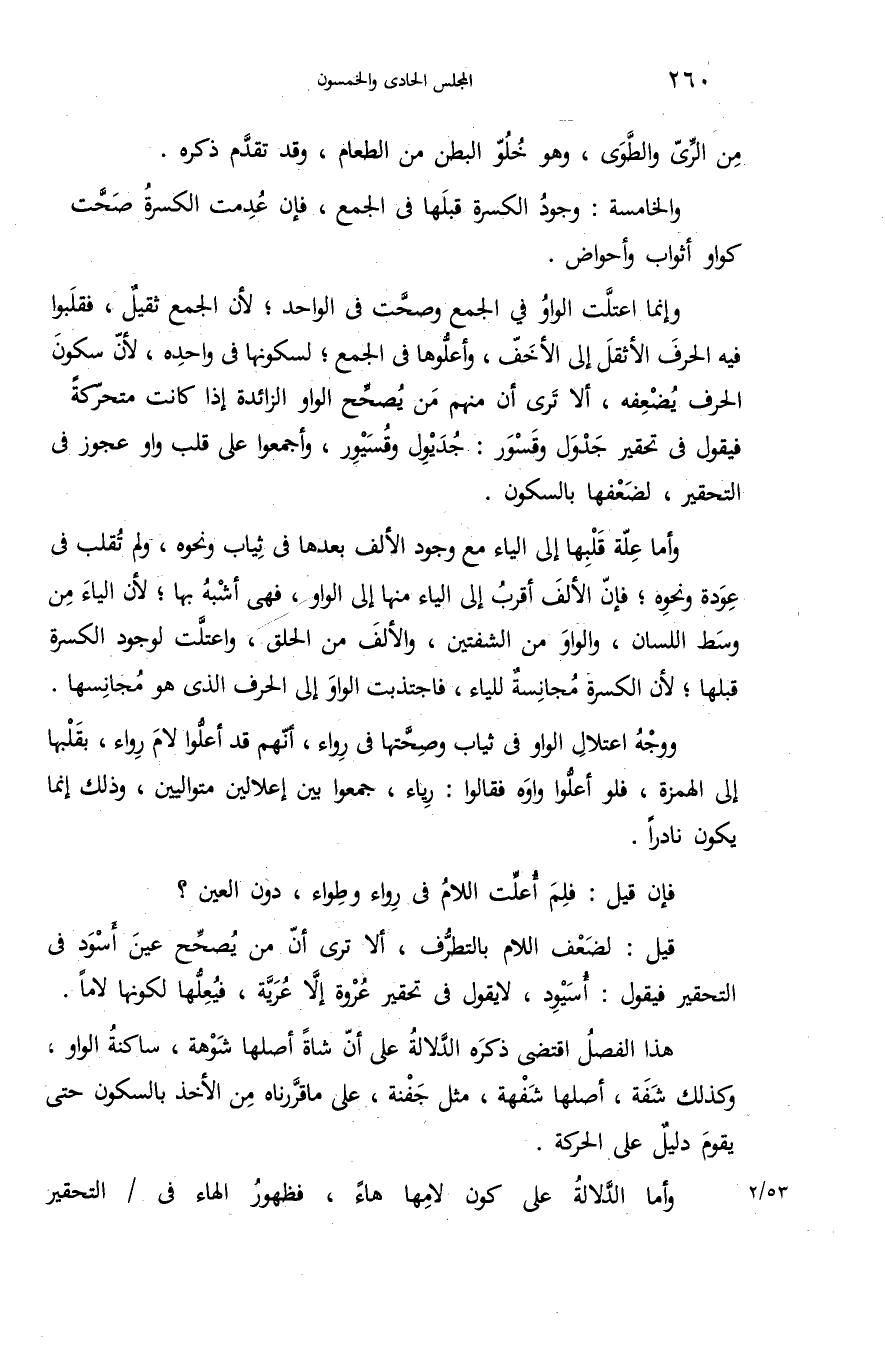 قيل: لضعف اللام بالتطرّف، ألا ترى أنّ من يصحّح عين أسود فى التحقير فيقول: أسيود، لا يقول فى تحقير عروة إلاّ عريّة، فيعلّها لكونها لاما.