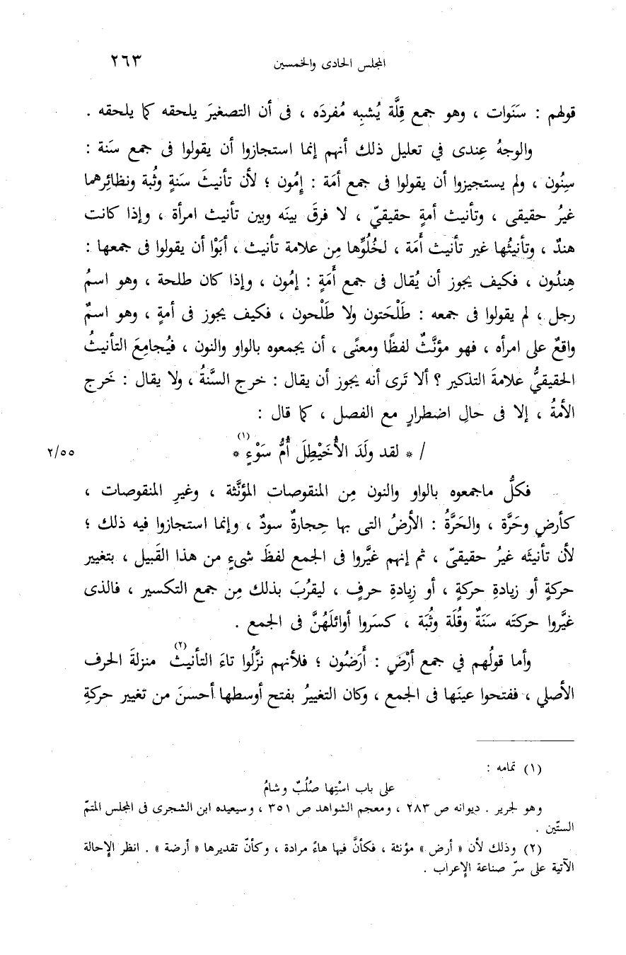 (¬1) تمامه: على باب استها صلب وشام وهو لجرير. ديوانه ص 283، ومعجم الشواهد ص 351، وسيعيده ابن الشجرى فى المجلس المتمّ الستّين.