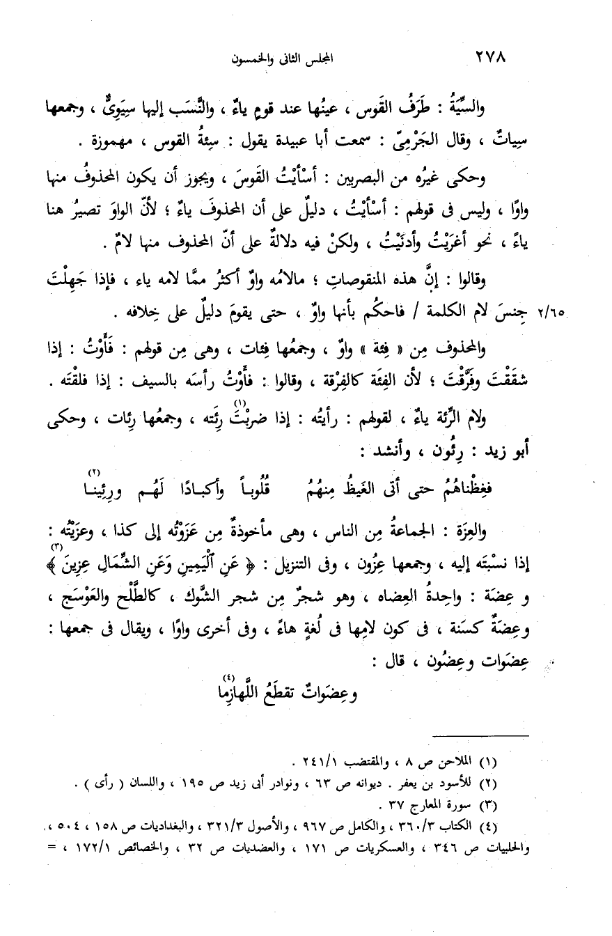 وحكى غيره من البصريين: أسأيت القوس، ويجوز أن يكون المحذوف منها واوا، وليس فى قولهم: أسأيت، دليل على أن المحذوف ياء؛ لأنّ الواو تصير هنا ياء، نحو أغريت وأدنيت، ولكن فيه دلالة على أنّ المحذوف منها لام.
