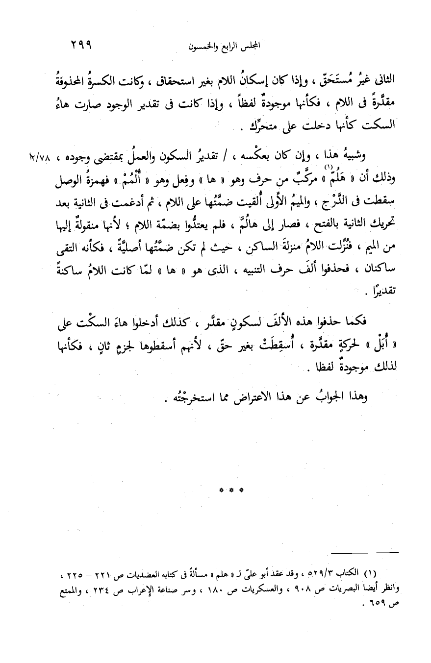(¬1) الكتاب 3/ 529، وقد عقد أبو علىّ ل «هلم» مسألة فى كتابه العضديات ص 221 - 225، وانظر أيضا البصريات ص 908، والعسكريات ص 180، وسر صناعة الإعراب ص 234، والممتع ص 659.