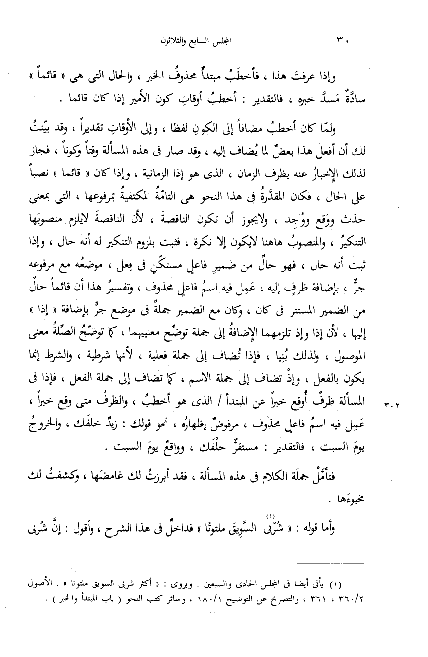 (¬1) يأتى أيضا فى المجلس الحادى والسبعين. ويروى: «أكثر شربى السويق ملتوتا». الأصول 2/ 360،361، والتصريح على التوضيح 1/ 180، وسائر كتب النحو (باب المبتدأ والخبر).