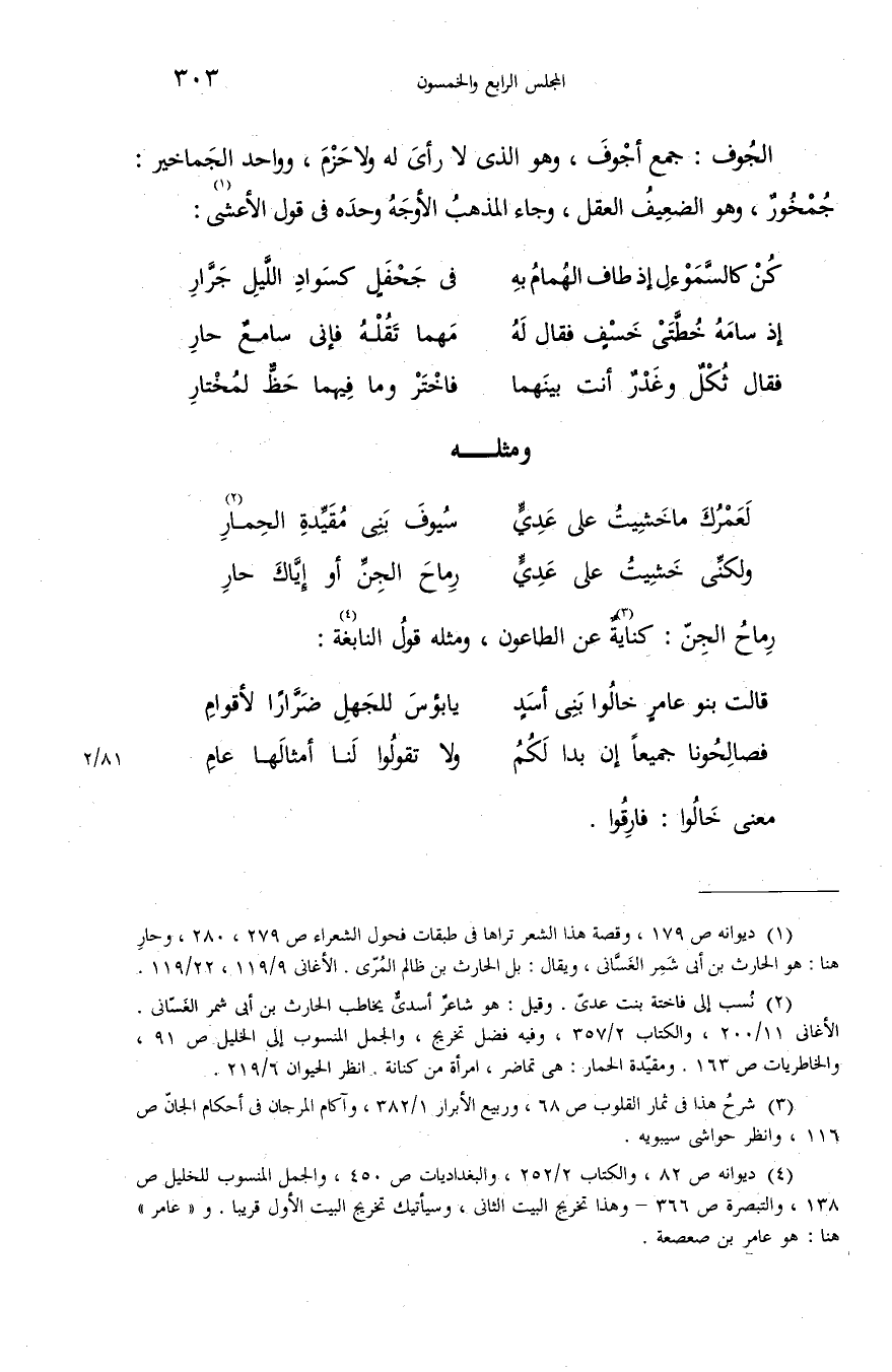 (¬3) شرح هذا فى ثمار القلوب ص 68، وربيع الأبرار 1/ 382، وآكام المرجان فى أحكام الجانّ ص 116، وانظر حواشى سيبويه.
