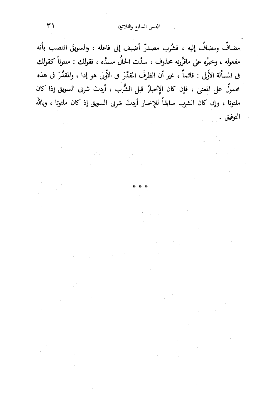 مضاف ومضاف إليه، فشرب مصدر أضيف إلى فاعله، والسويق انتصب بأنه مفعوله، وخبره على ما قرّرته محذوف، سدّت الحال مسدّه، فقولك: ملتوتا كقولك فى المسألة الأولى: قائما، غير أن الظرف المقدّر فى الأولى هو إذا، والمقدّر فى هذه محمول على المعنى، فإن كان الإخبار قبل الشّرب، أردت شربى السويق إذا كان ملتوتا، وإن كان الشرب سابقا للإخبار أردت شربى السويق إذ كان ملتوتا، وبالله التوفيق.