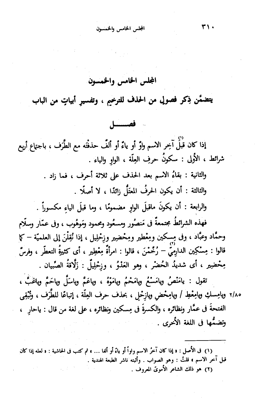 يتضمّن ذكر فصول من الحذف للترخيم، وتفسير أبيات من الباب